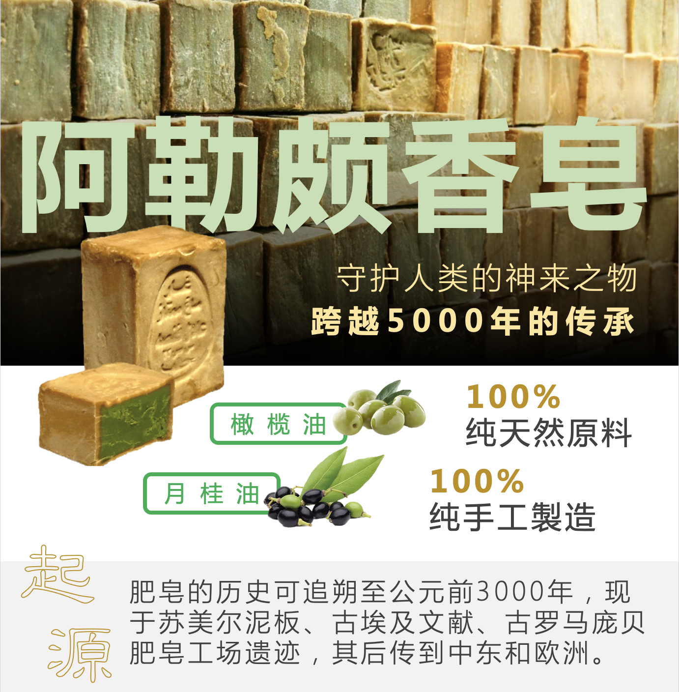 • 纯天然阿勒颇古法手工皂