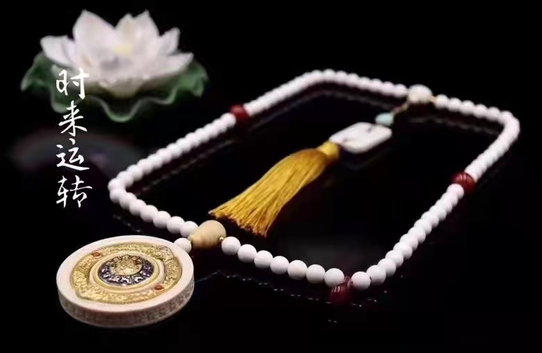 九宫时来运转猛犸象牙牌】纯手工雕刻,镶嵌,不变形,持久耐用 纯手工打磨的天然松石南红点缀