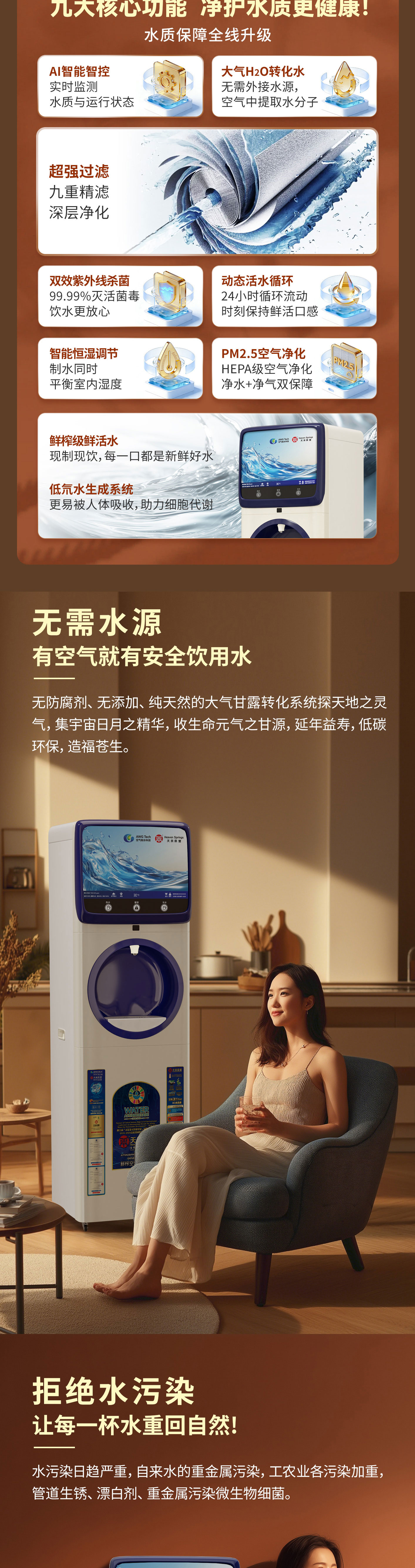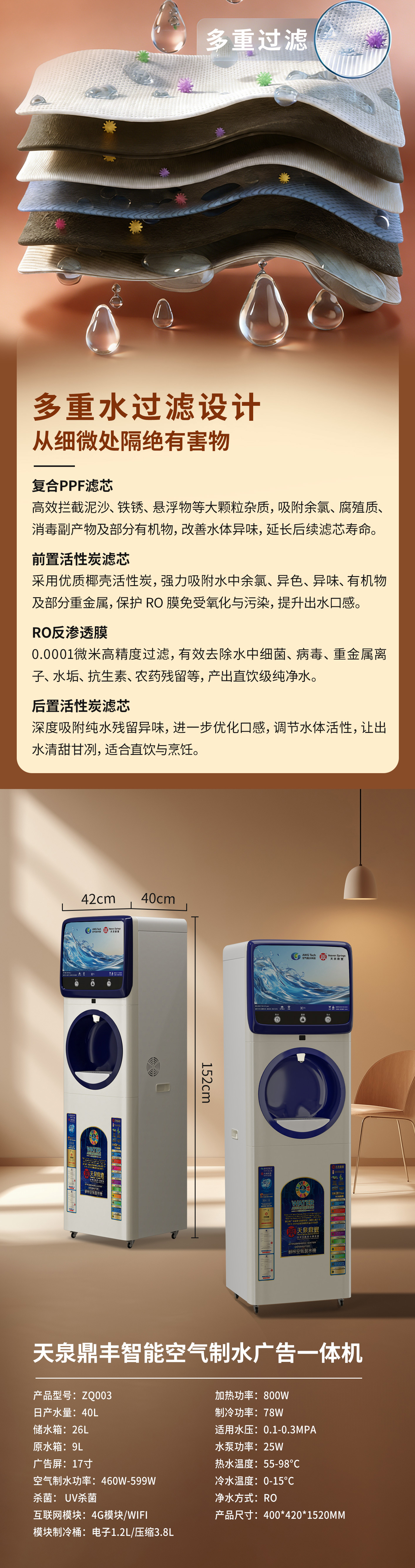 • 天泉鼎丰商用智能空气制水低氘水广告一体机 17寸大屏广告 支持租赁