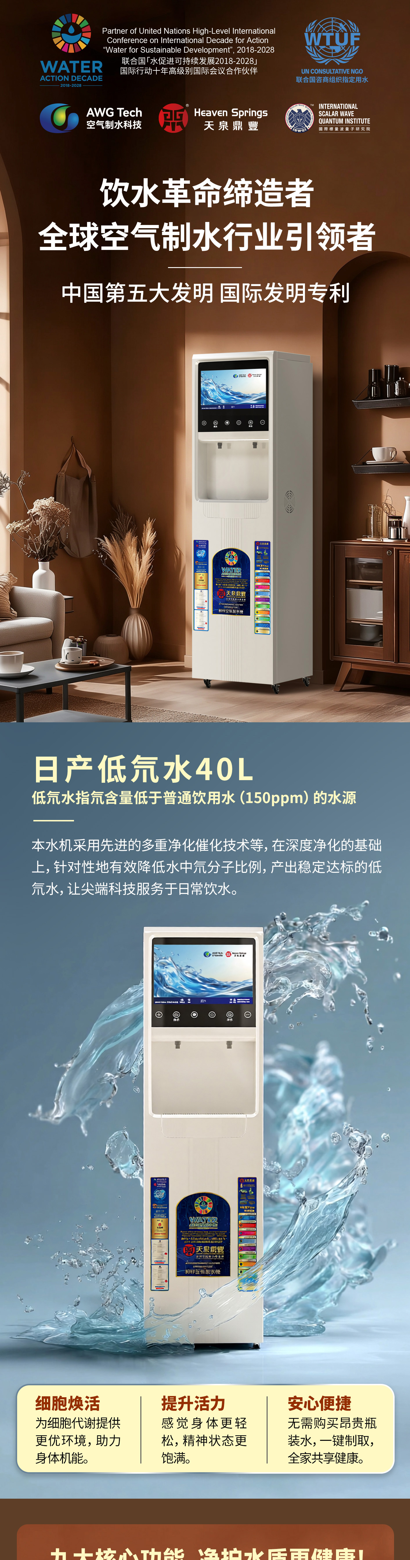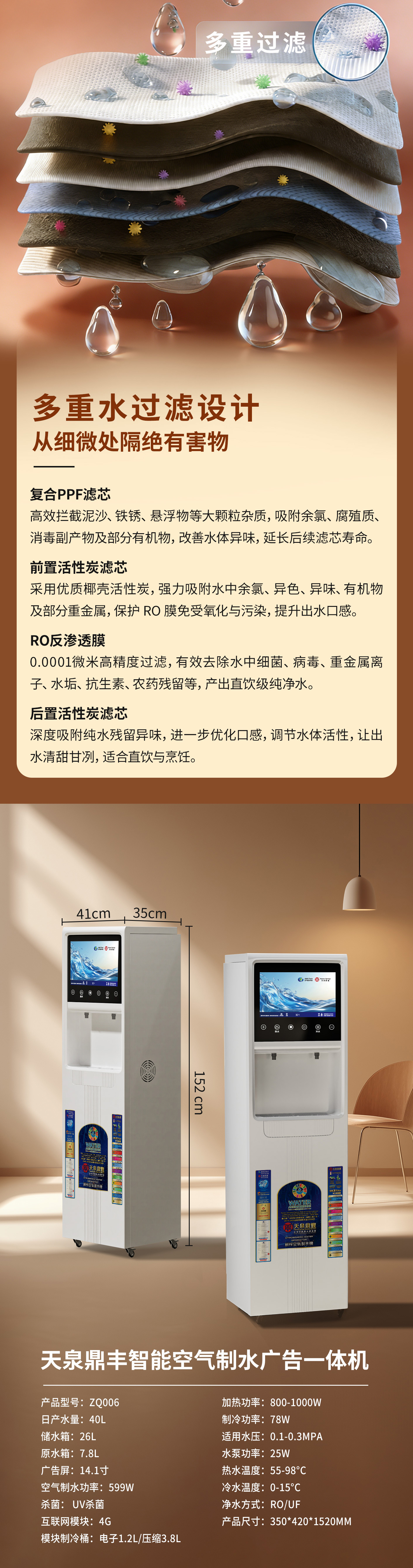 • 天泉鼎丰商用智能空气制水低氘水广告一体机 17寸大屏广告 支持租赁