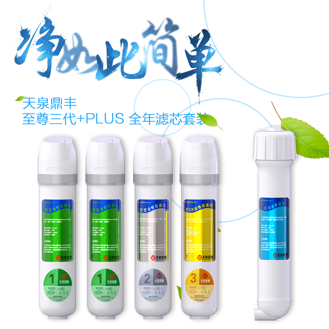 • 天泉鼎丰官方正品-至尊三代plus滤芯套装(4款9支) 前置活性炭滤芯 尺寸:10寸 适用机型 至尊三代+PLUS水机