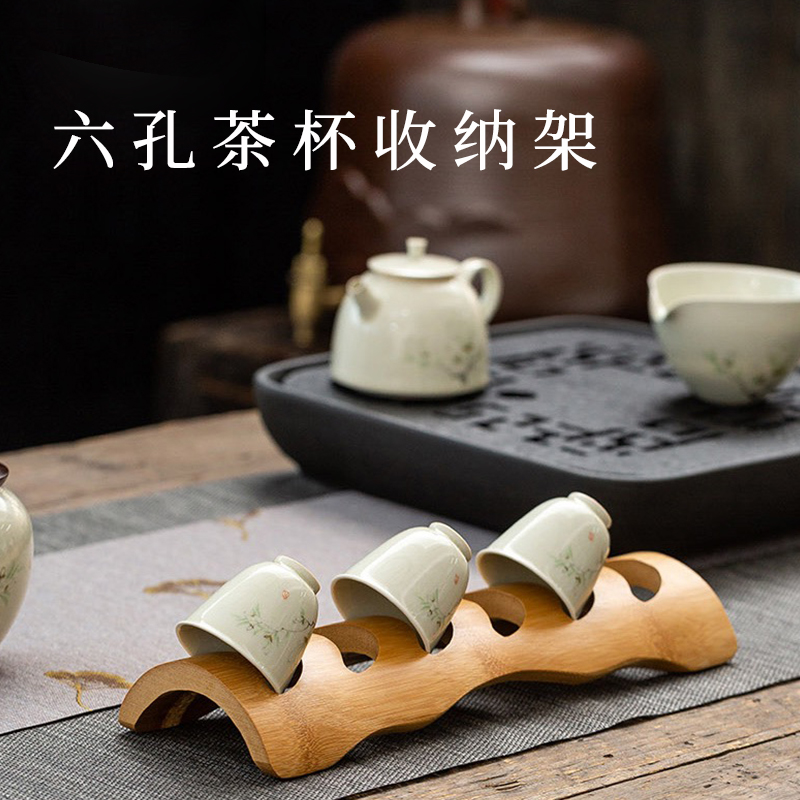 六孔茶杯收纳竹杯架天然竹子杯子置放茶具架子