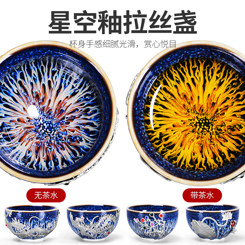 星空釉鑲银建盏茶杯
