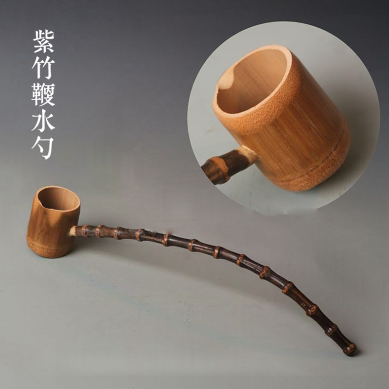竹根长柄茶勺紫竹鞭水勺(勺口径约5cm勺高约7cm总长约41cm)